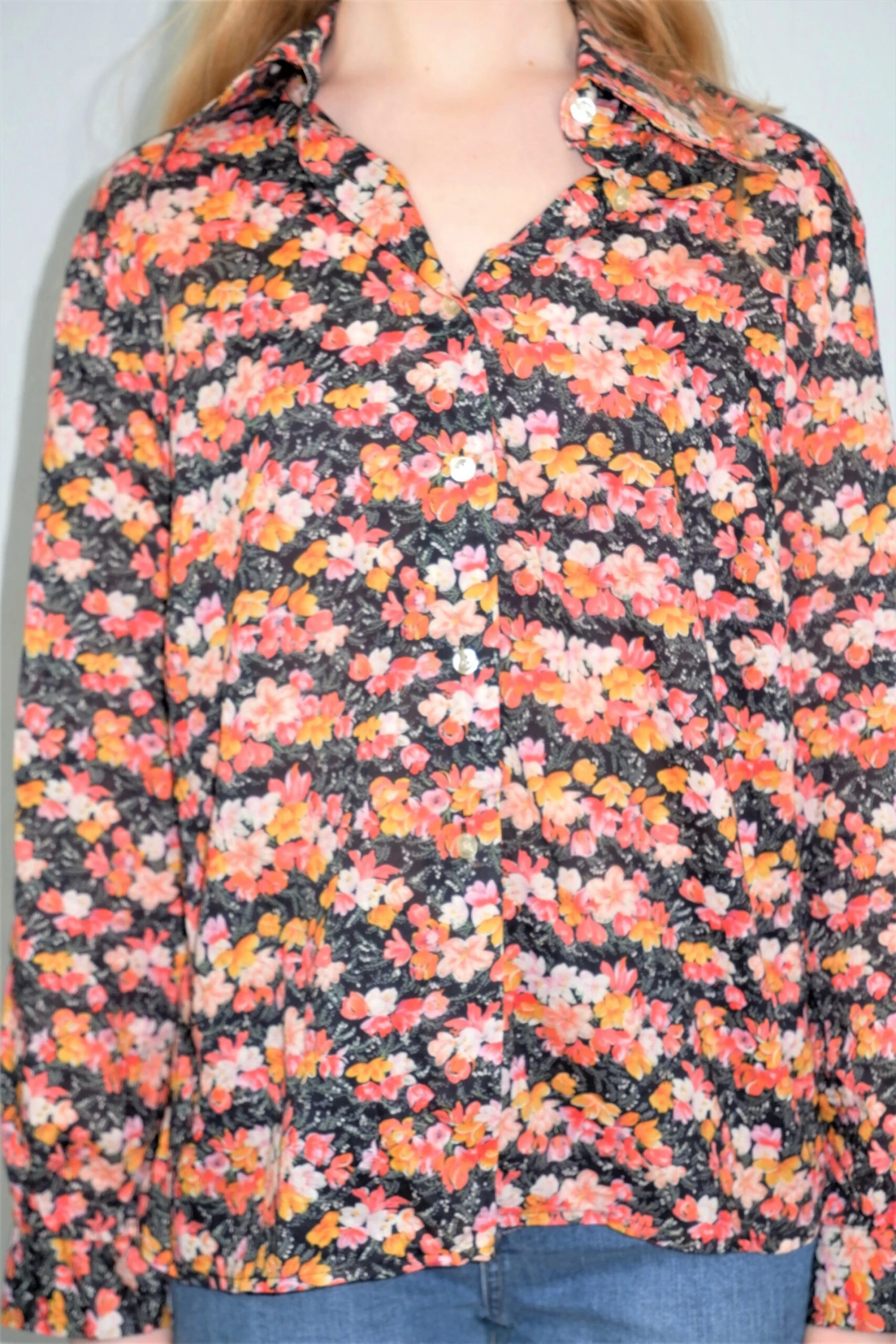 Super fun and retro ditsy floral shirt with a 70’s style pointed collar.