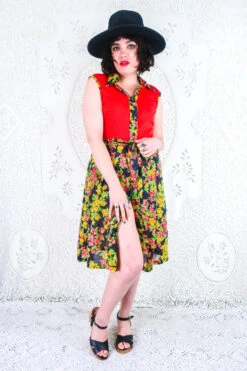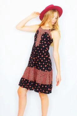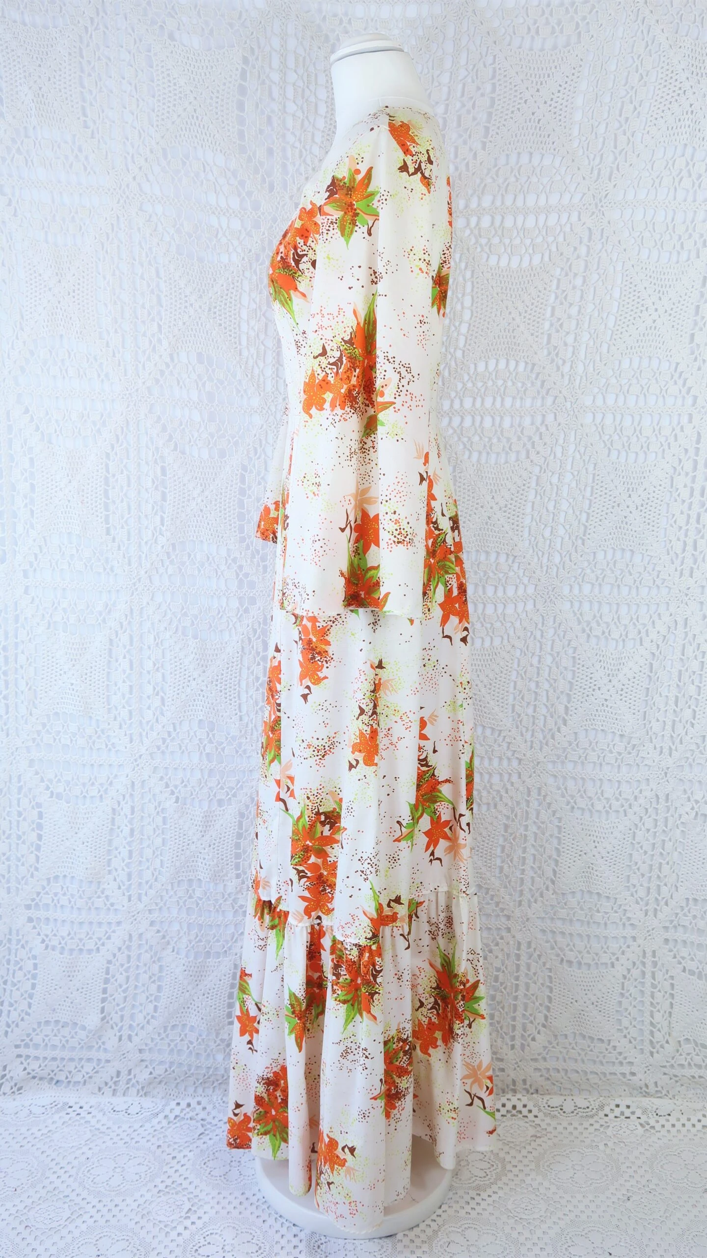 Pretty 70s vintage dress with three quarter sleeves and a tiered frill hem!