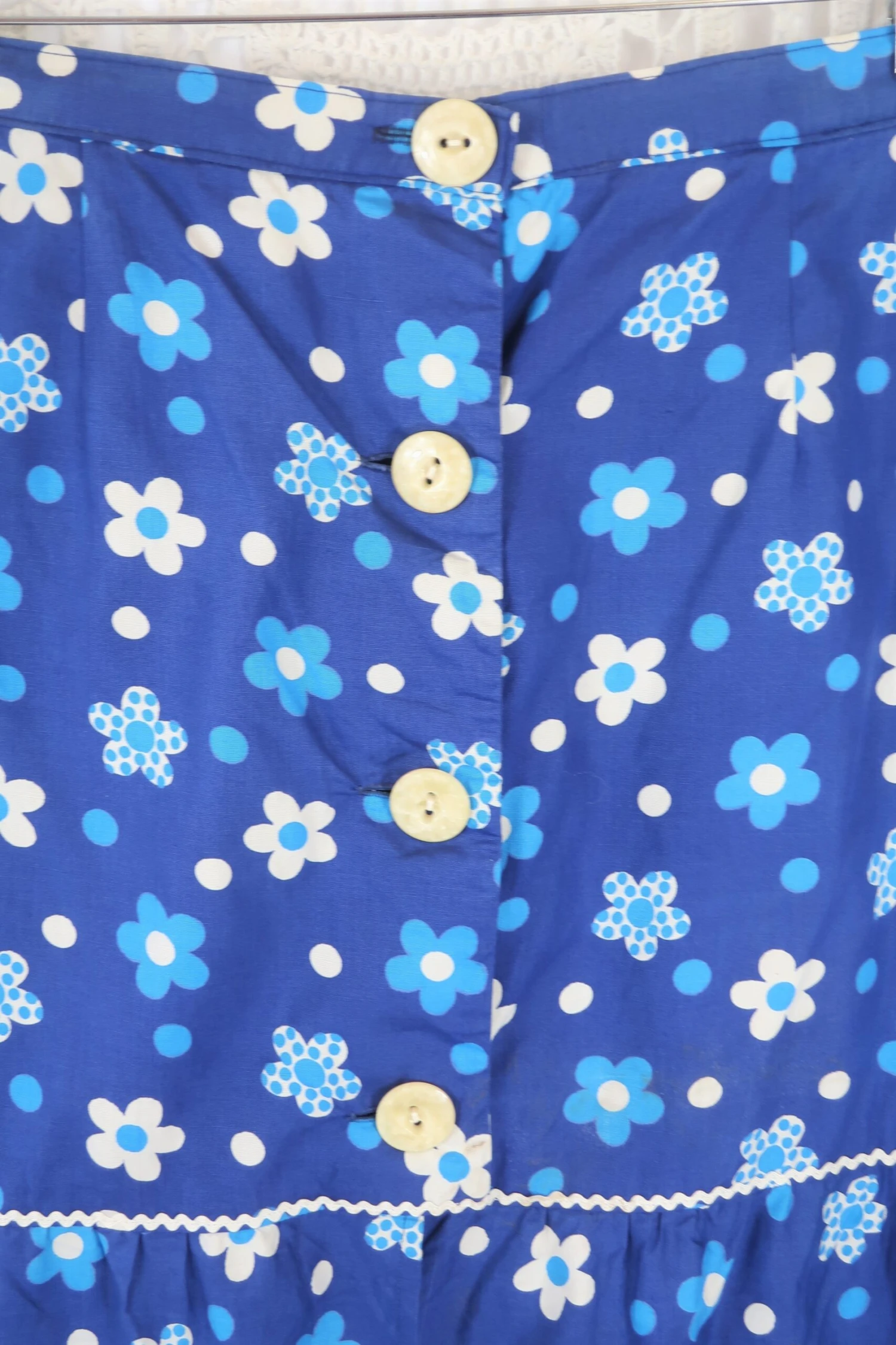 Super cute vintage button up skirt with a youthful floral print & imitation mother of pearl buttons. Would look amazing with a vintage white blouse or a cropped shirt.