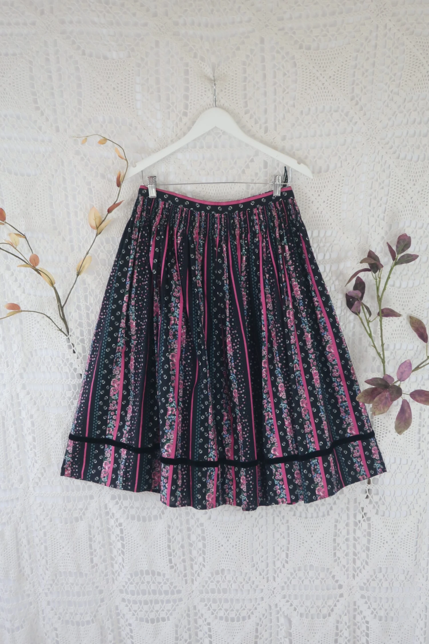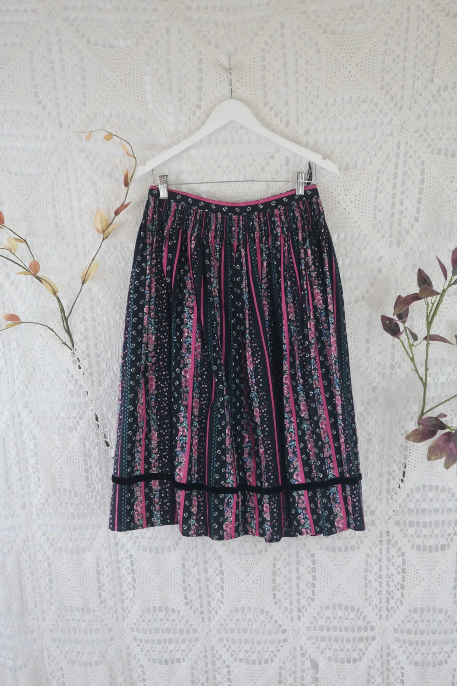 Gorgeous vintage skirt with an enchanting floral print. Would look great with a white blouse or one of our block colour Venus tops!ย