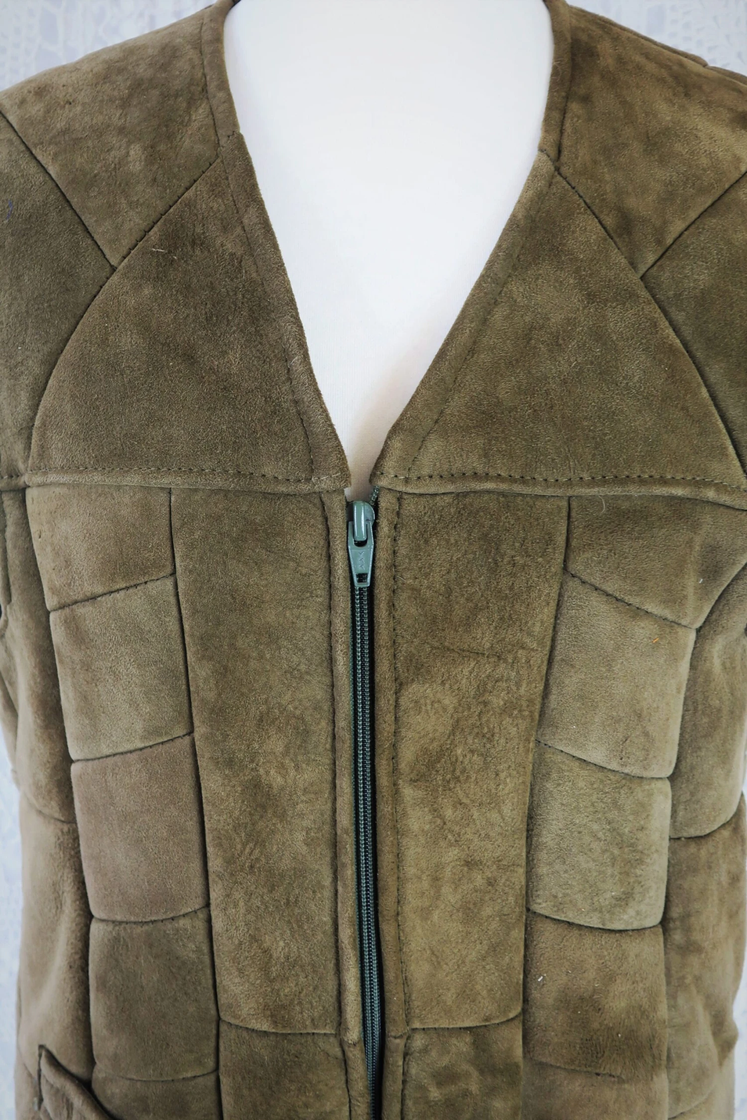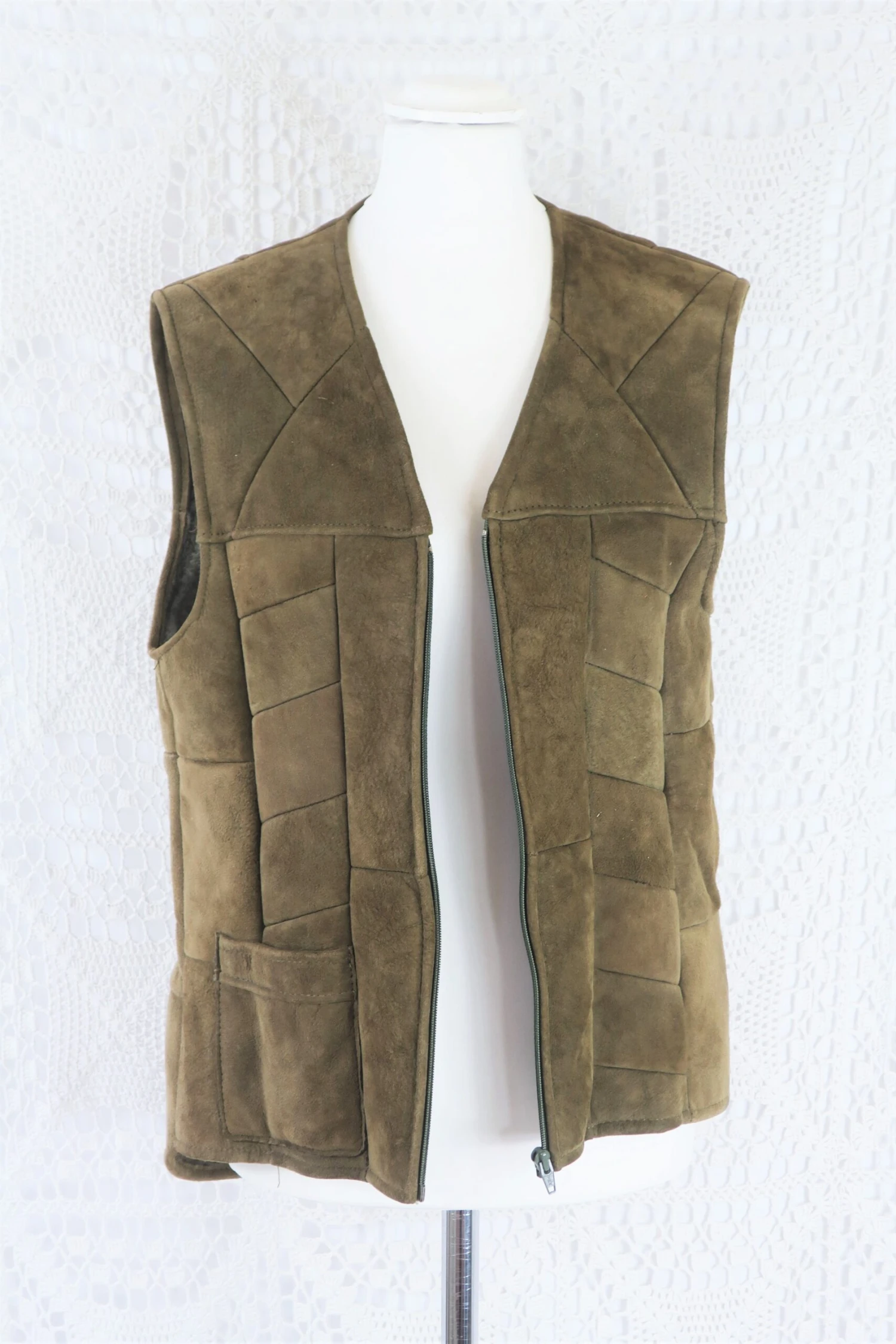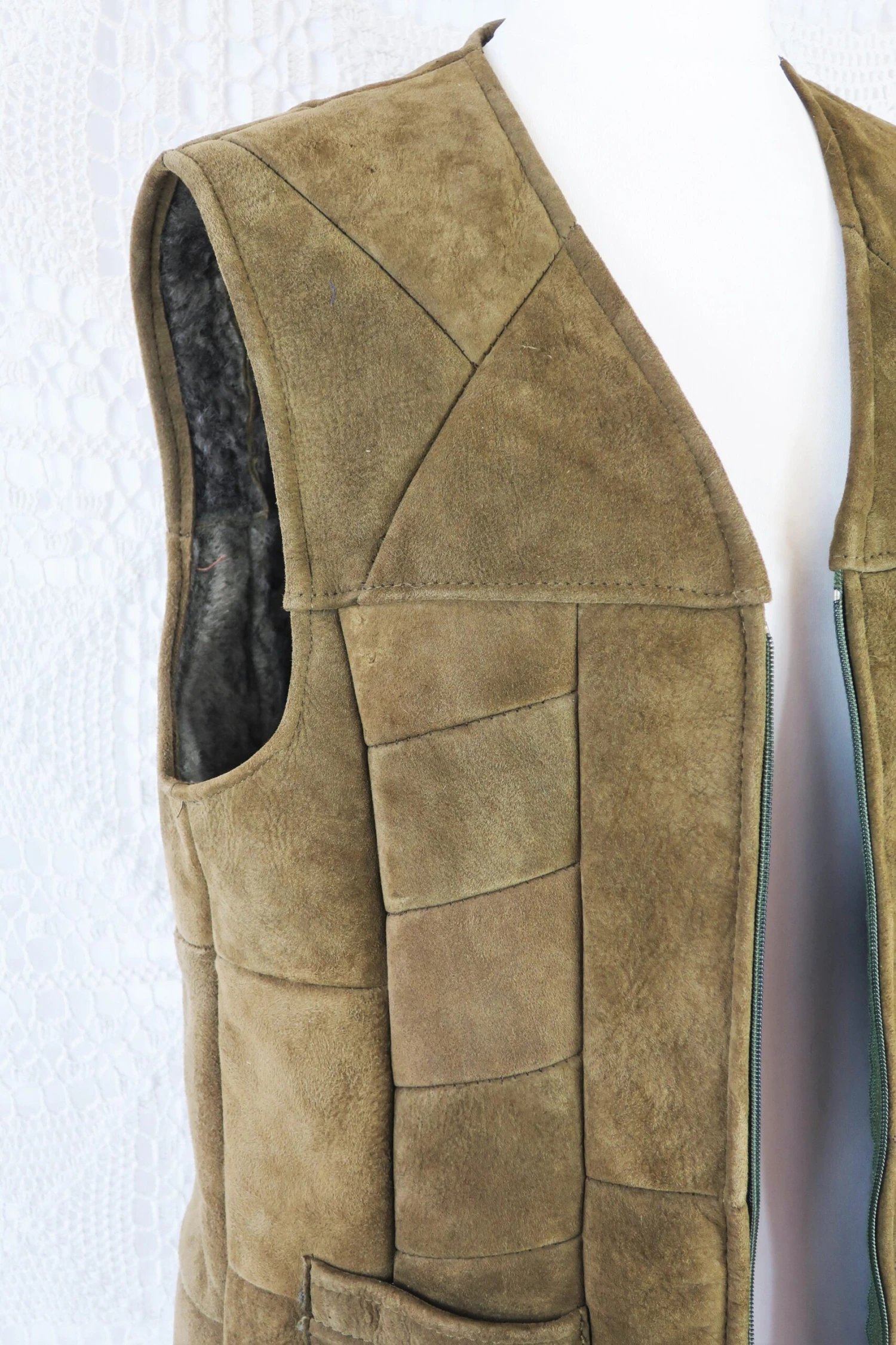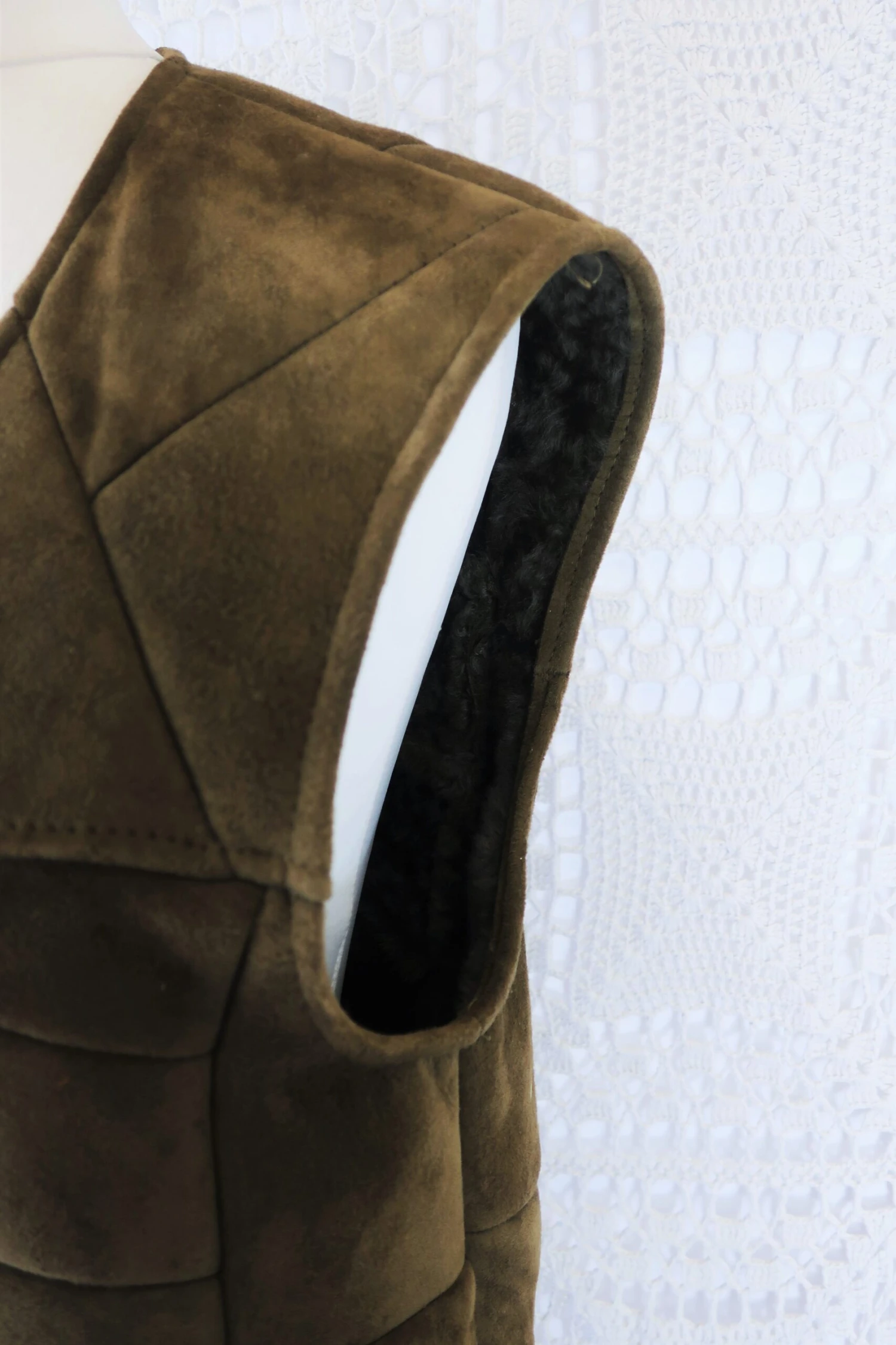 Amazing panelled suede waistcoat with a super cosy faux fur lining & zip fastening!