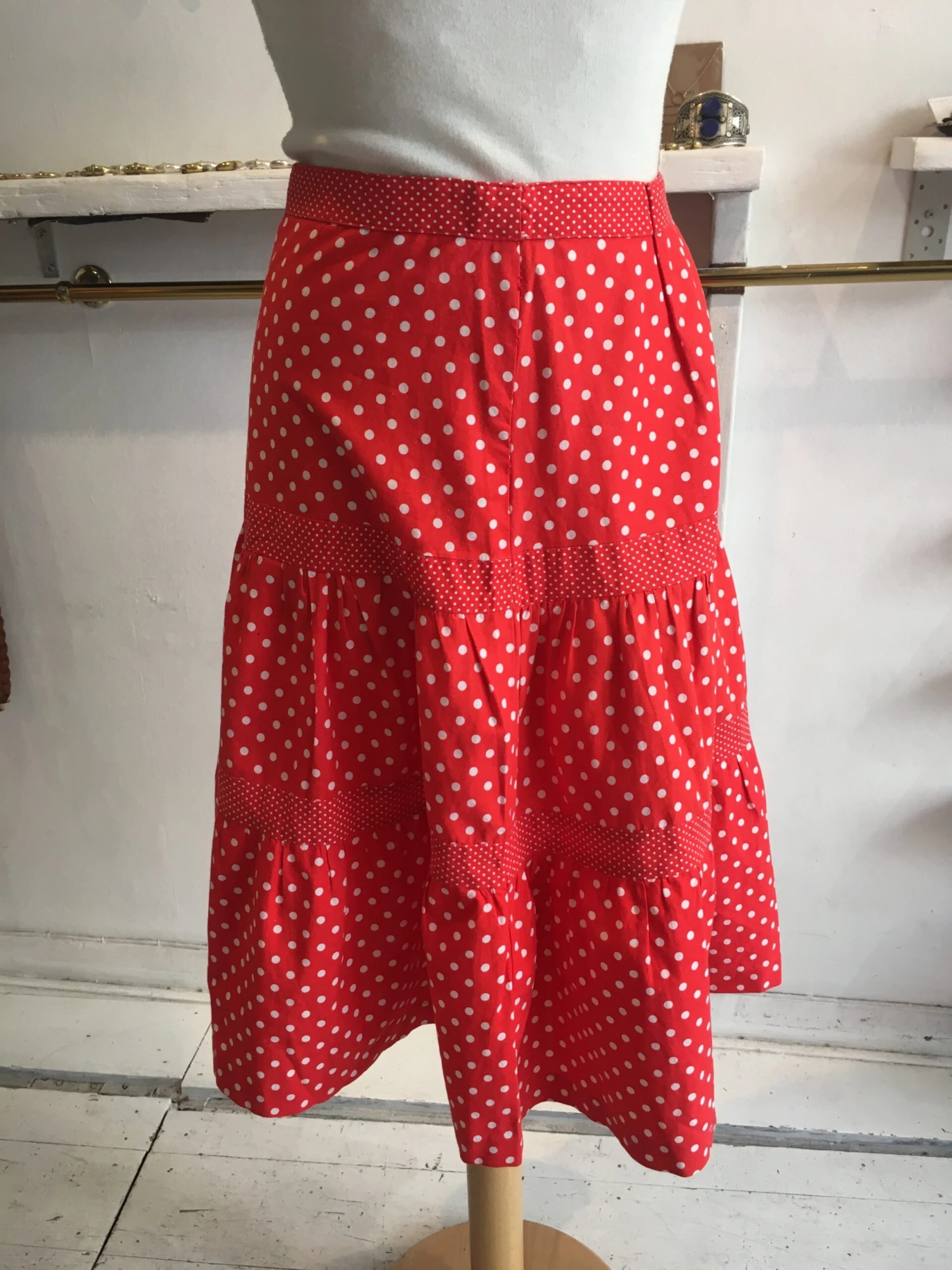 Super bright red polka dot, with 3 tier design.ย