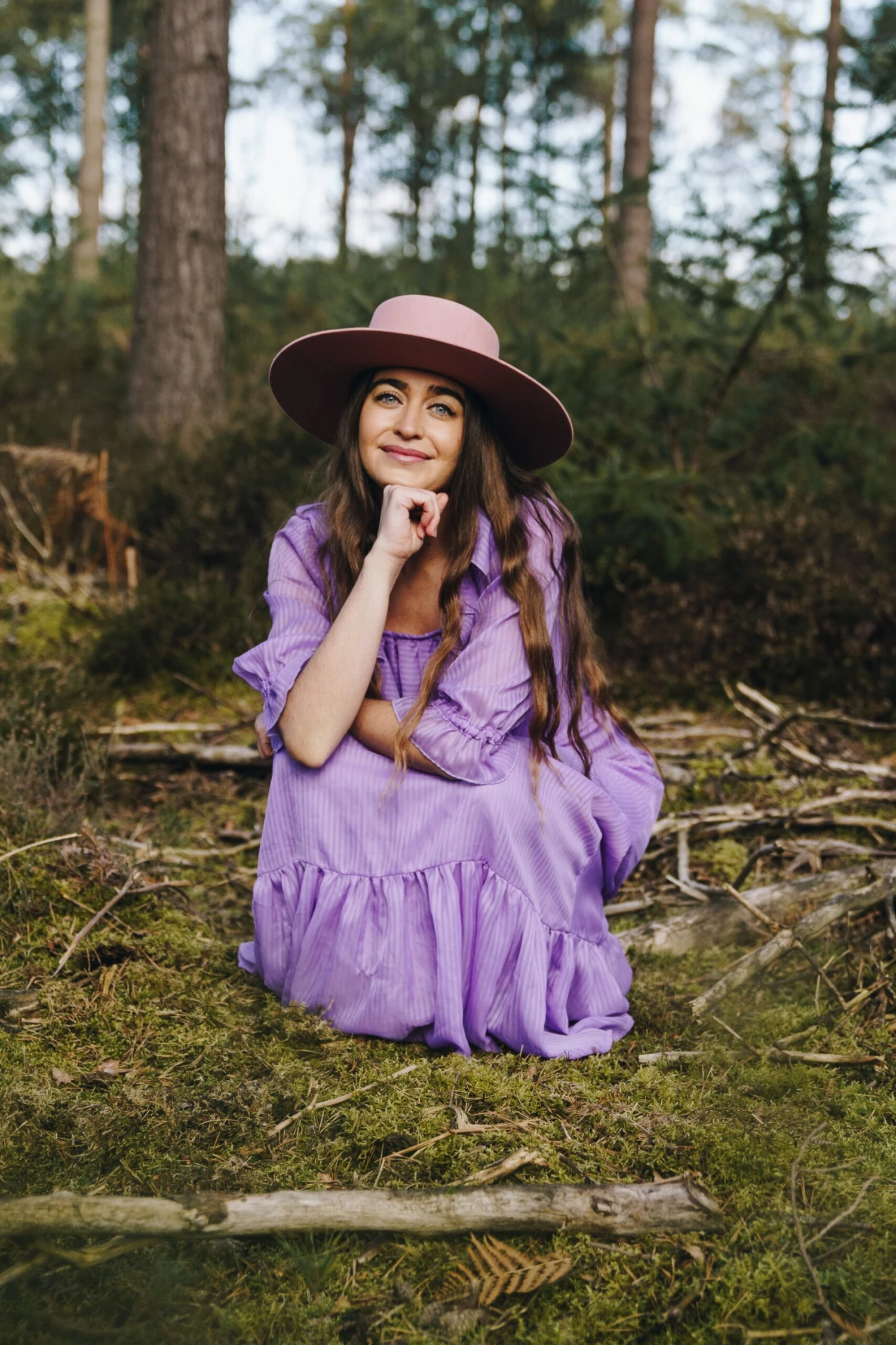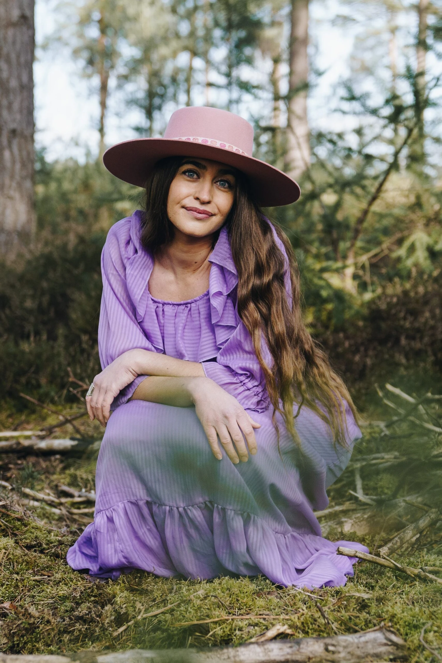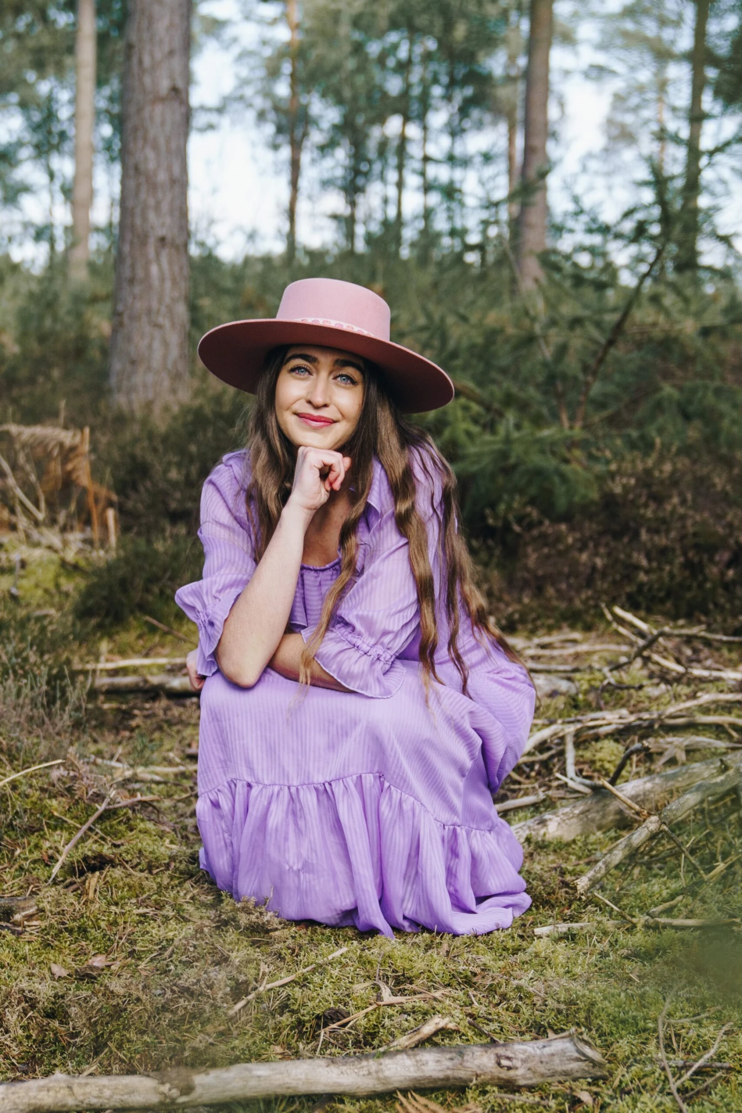 Amazing 70s maxi dress in a gorgeous lilac colour with frilly half sleeves and a wide frilly neckline.