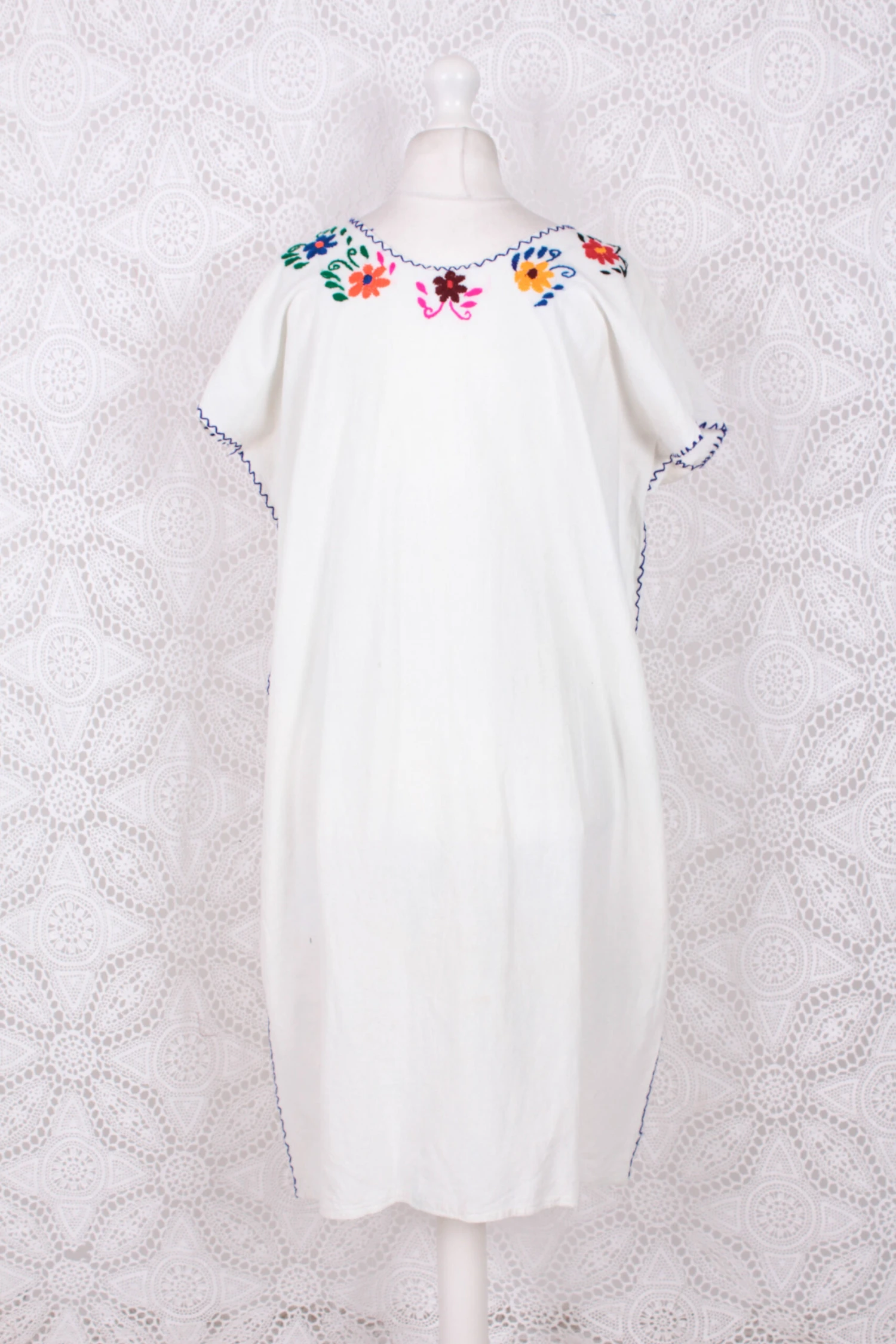 Beautiful and bold white kaftan/shift style sleeveless dress with