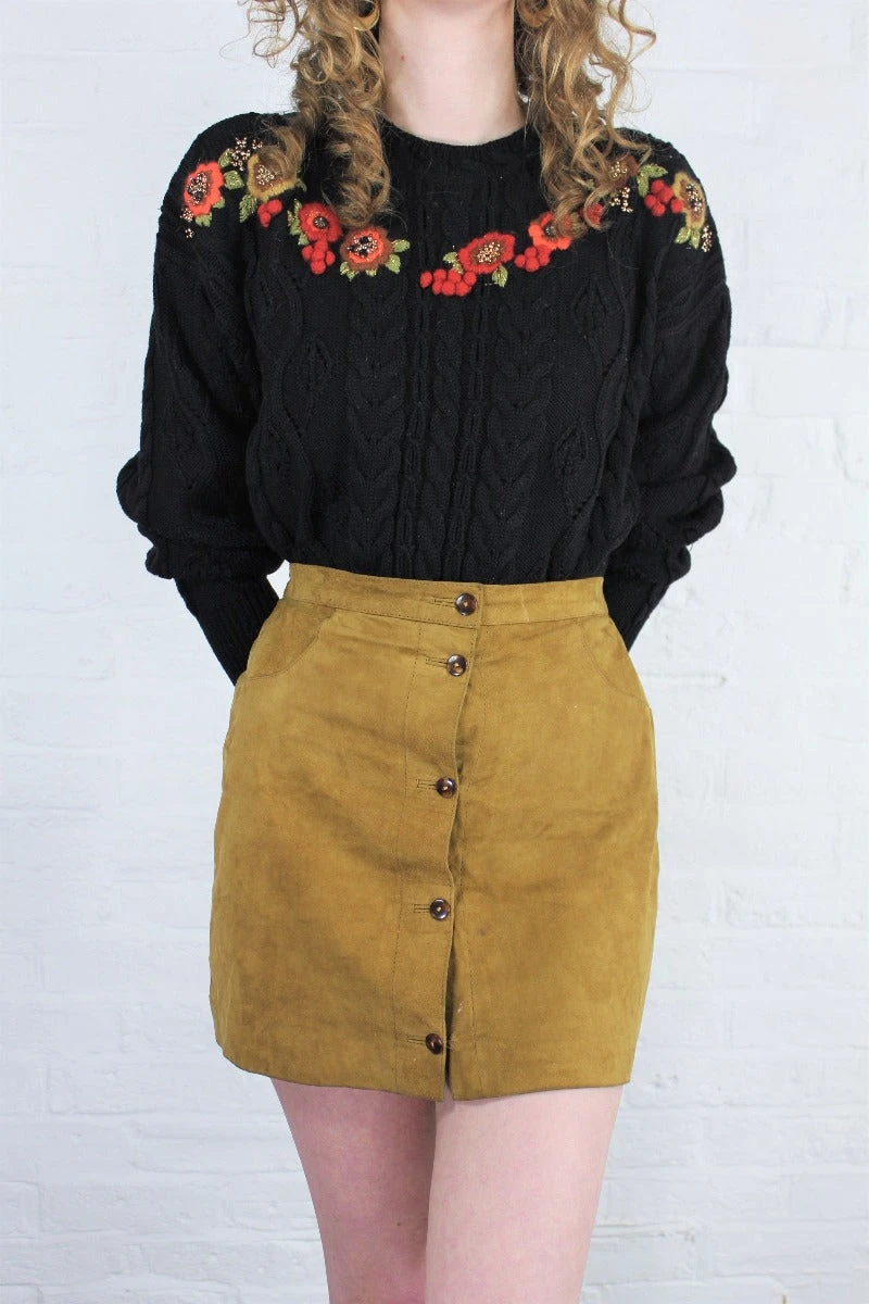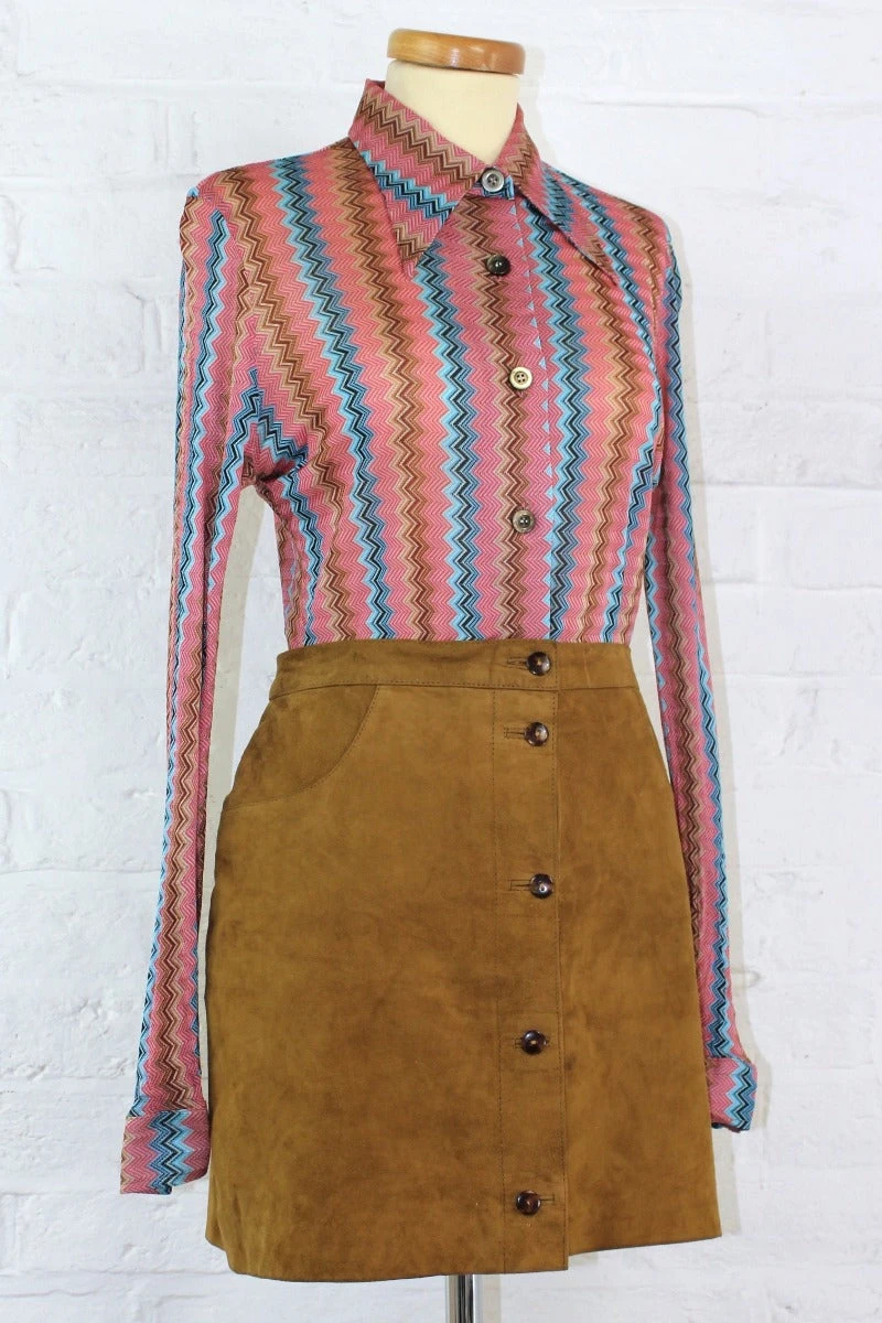 Really soft suede button up mini skirt. In a camel brown earth tone, it’s a chic simple skirt that is so easy to style and wear in the summer or layer up for the colder months.