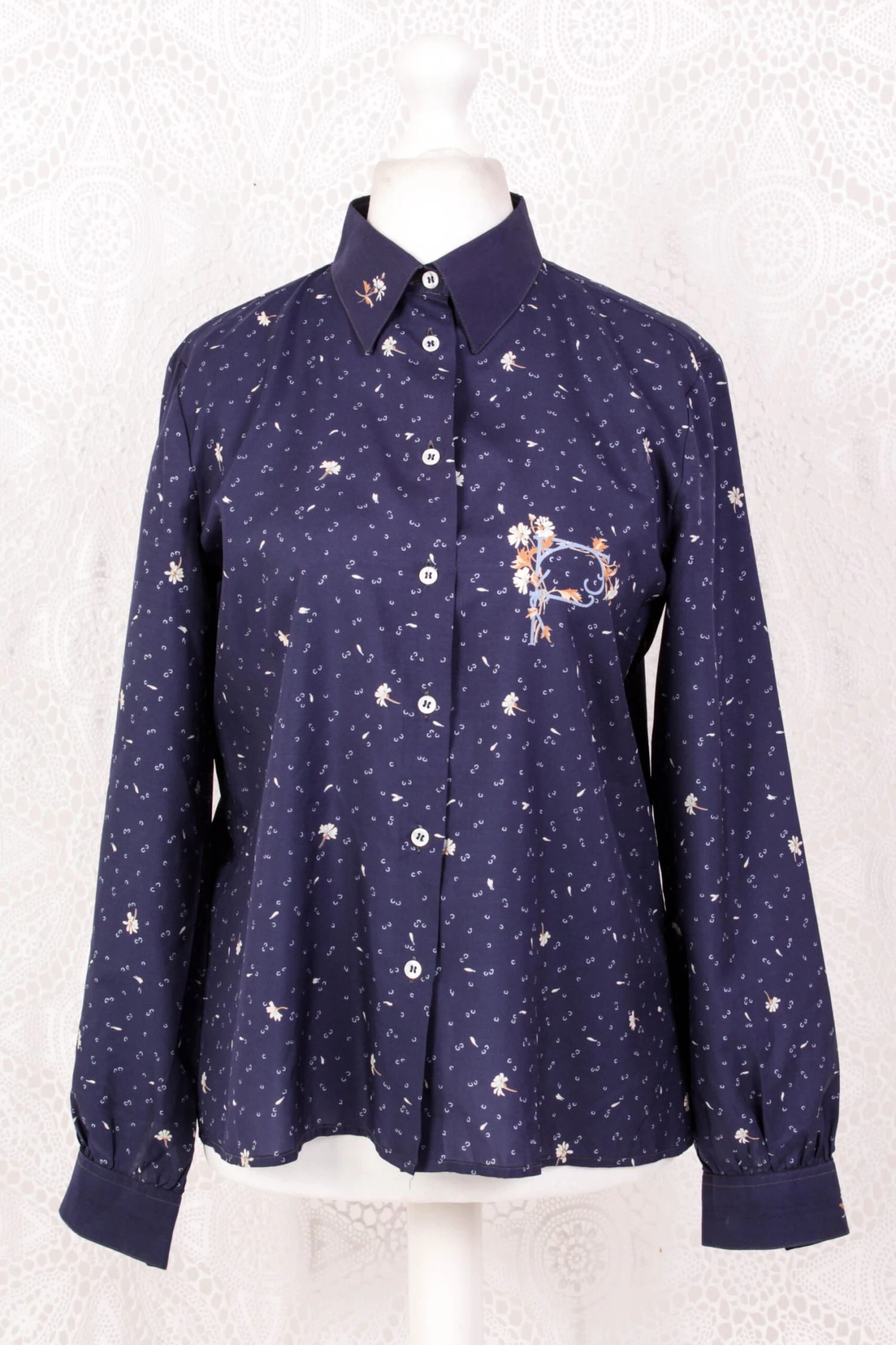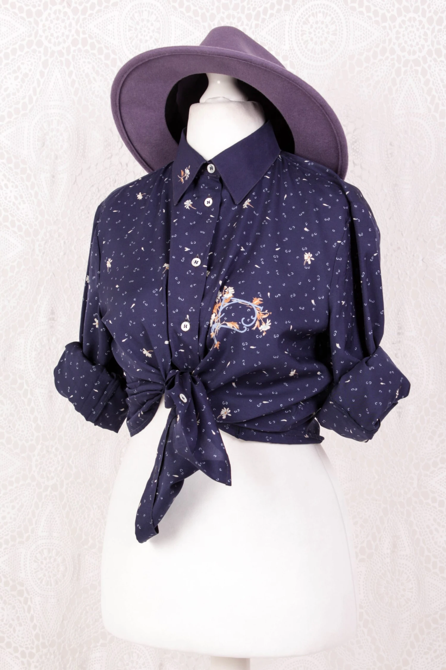 Gorgeous vintage shirt with a scattered floral pattern and an ‘F’ print monogram on the left chest