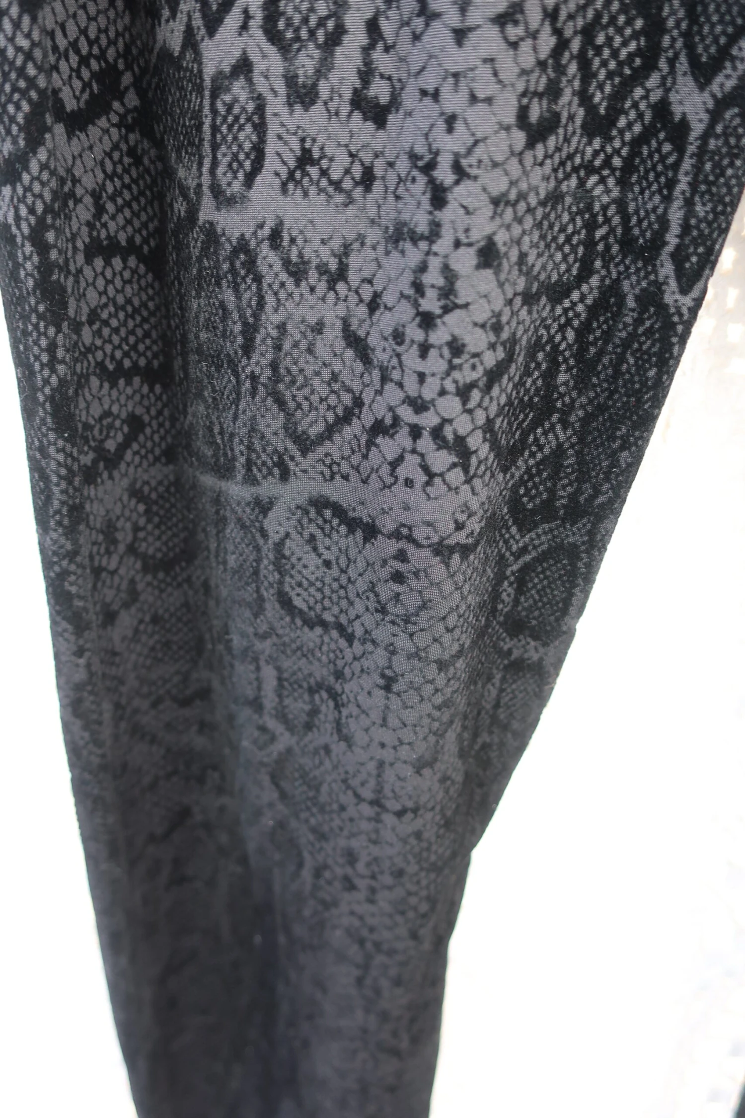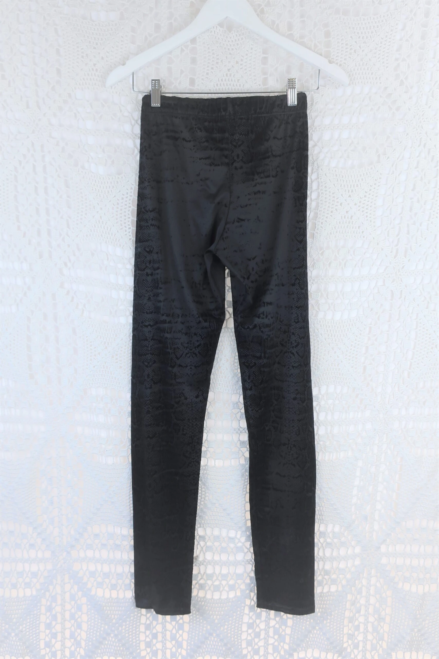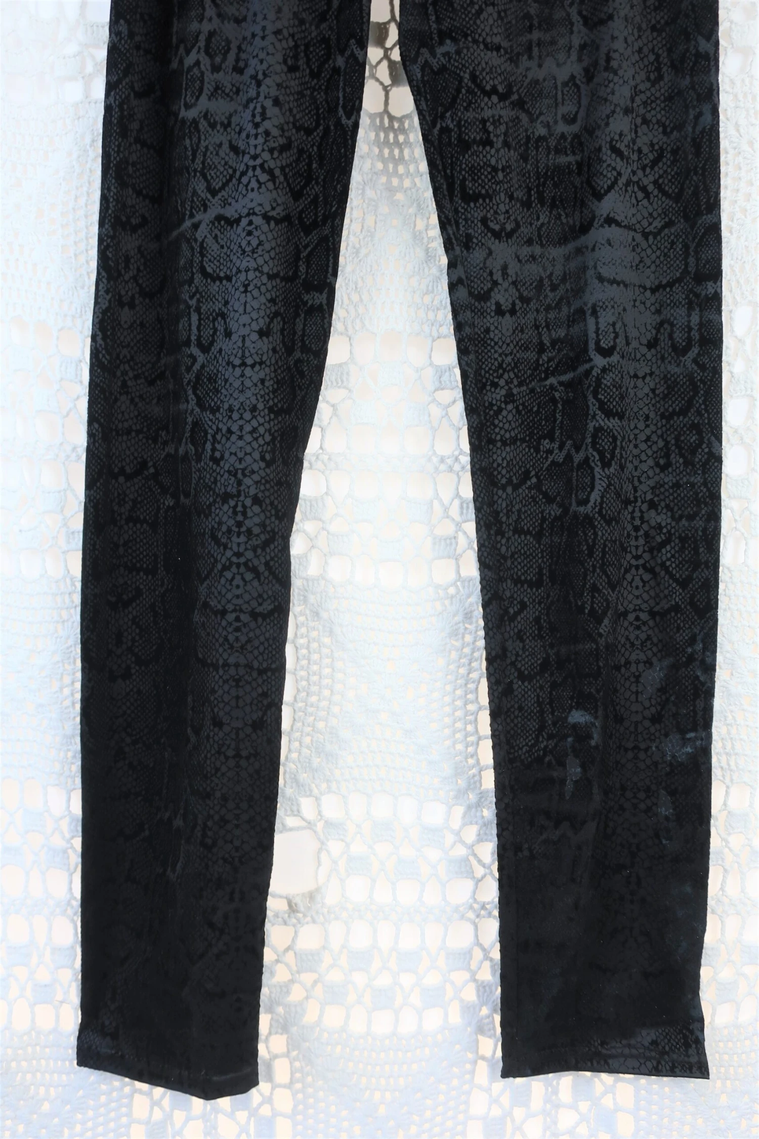Cool deep black jegging style leggings with rock chic vibes. Has an amazing snake print and figure hugging shape.ย