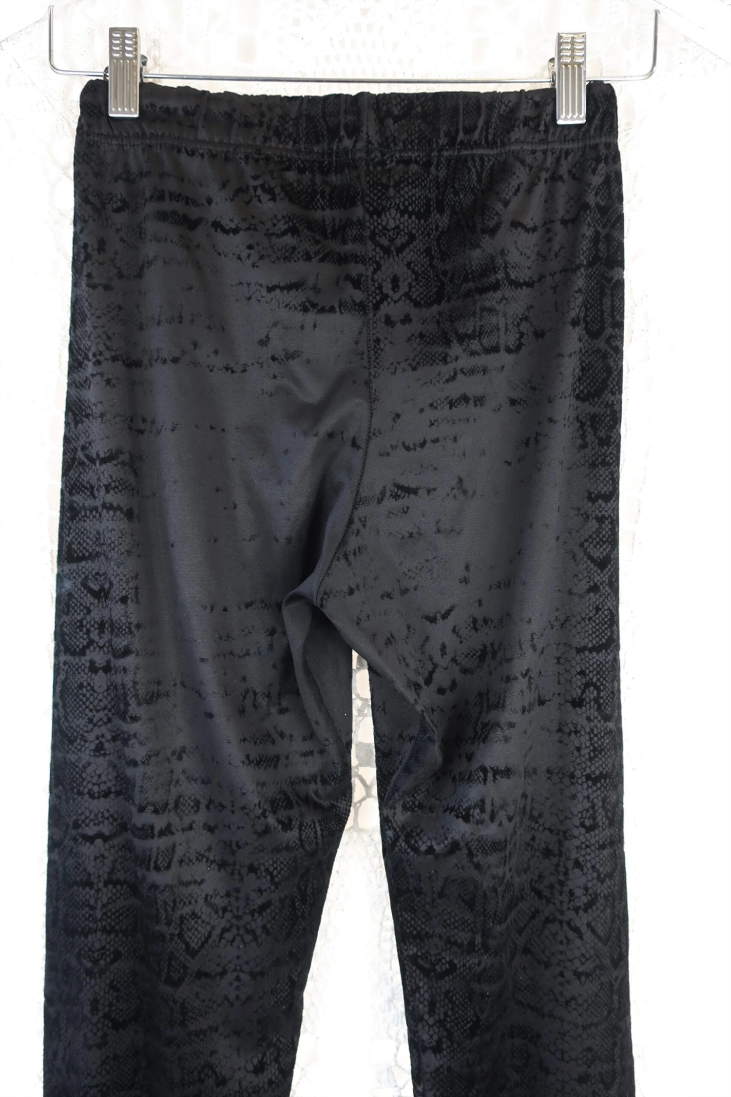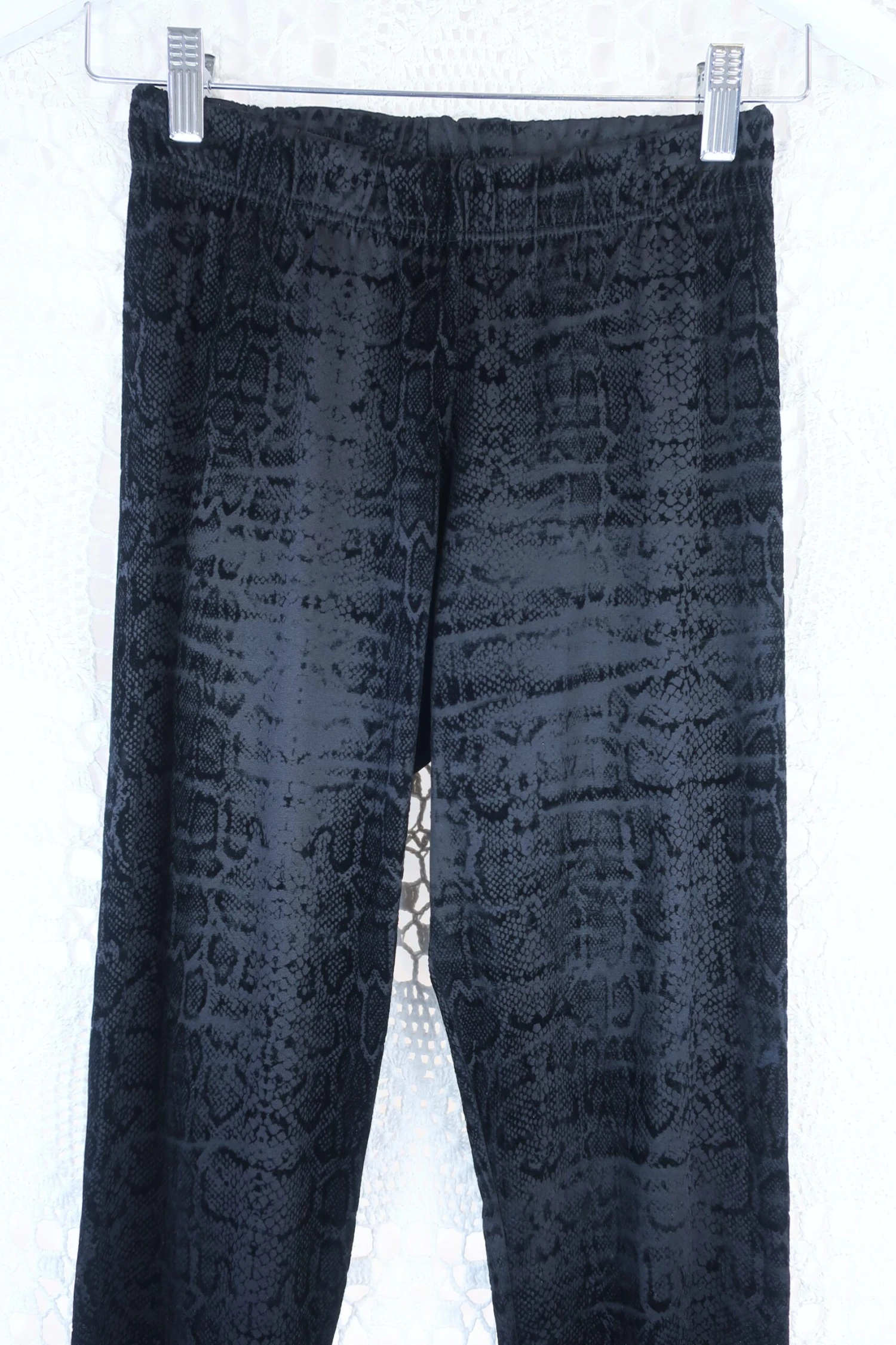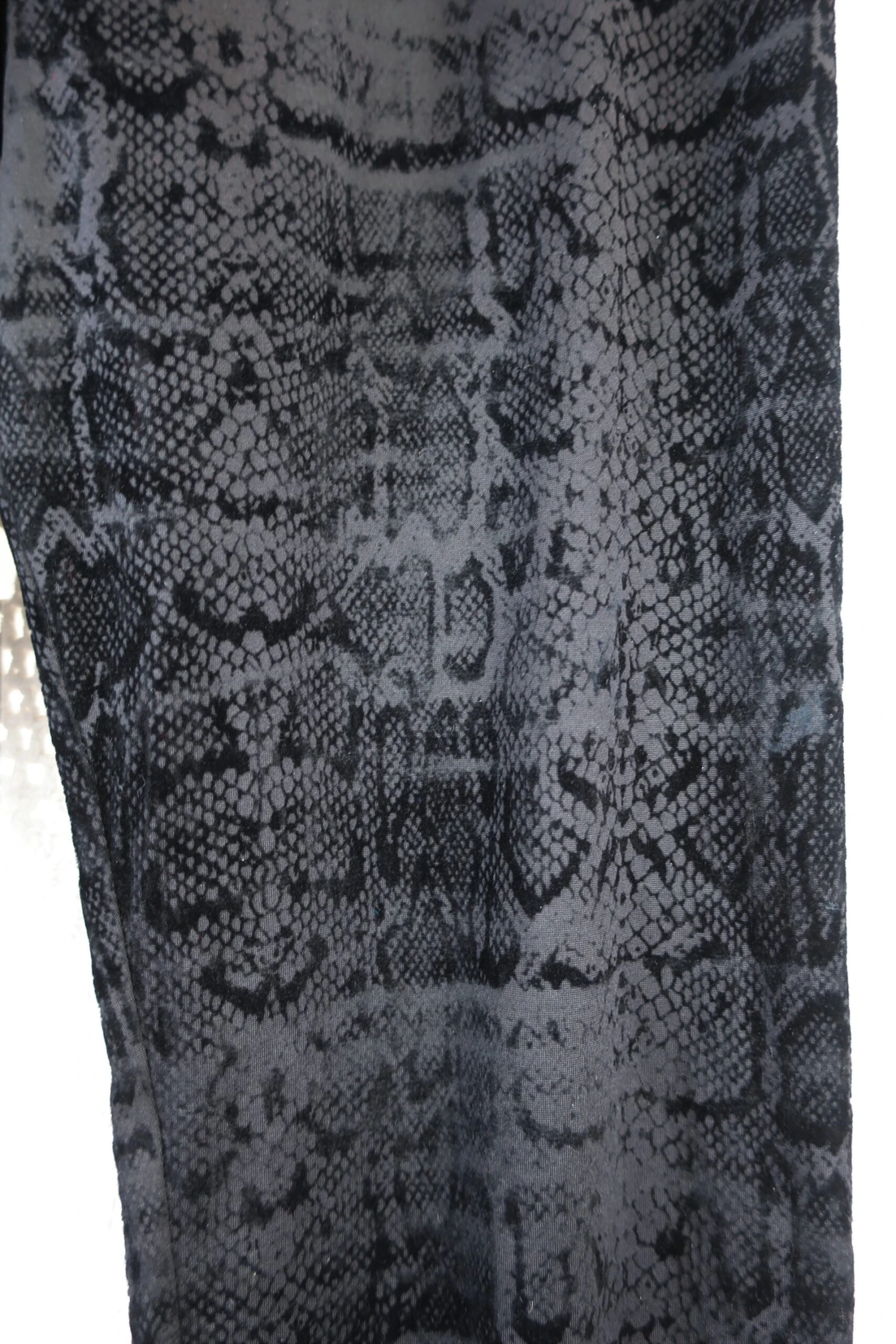 Cool deep black jegging style leggings with rock chic vibes. Has an amazing snake print and figure hugging shape.ย